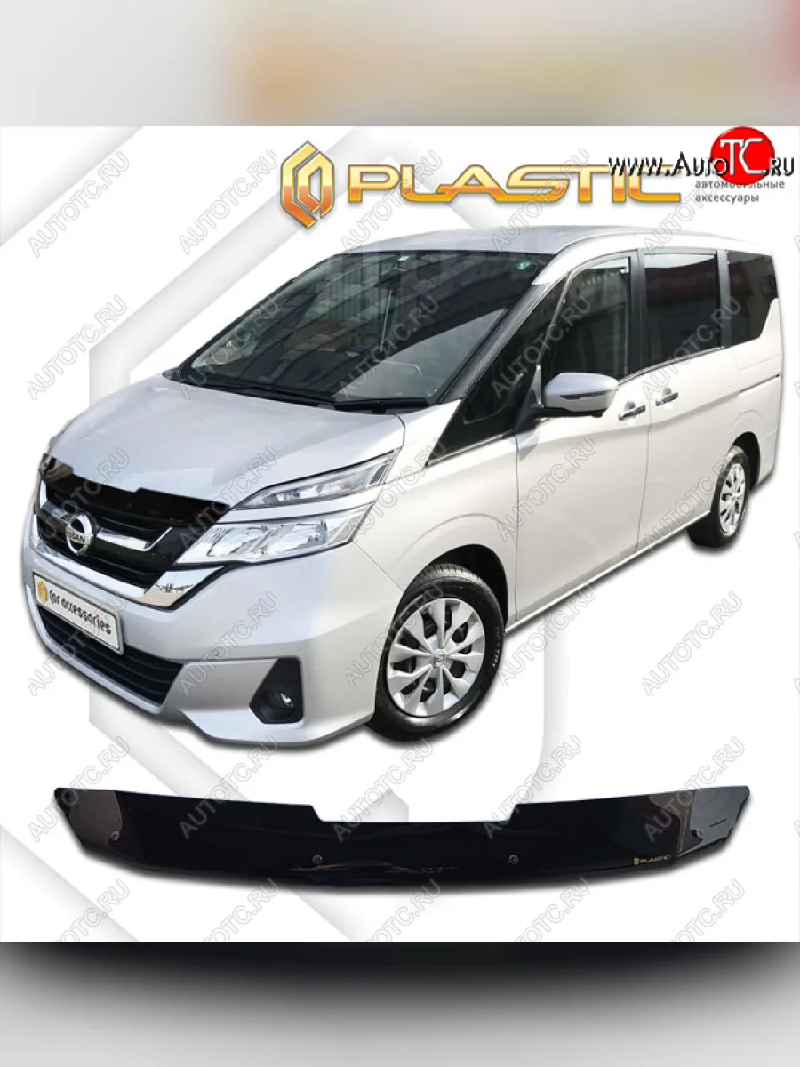 Дефлектор капота CA-Plastic Nissan Serena C27 минивэн дорестайлинг (2016-2019) (classic черный, без надписи) в Перми Пермском крае