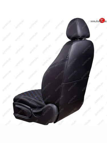 Чехлы для сидений Lord Autofashion Байрон (экокожа, 60/40, подлокотник, 3 Г-образных подголовника) Nissan Qashqai 2 J11 дорестайлинг (2013-2019) (Черный, вставка черная, строчка синяя) в Перми Пермском крае