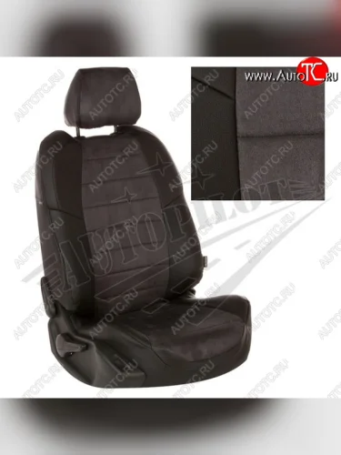 Чехлы на сиденья Алькантара (раздел. 40/60 без подлокот. экокожа) Автопилот Skoda Rapid NH3 рестайлинг лифтбэк (2017-2020) (черный/темно-серый) в Перми Пермском крае