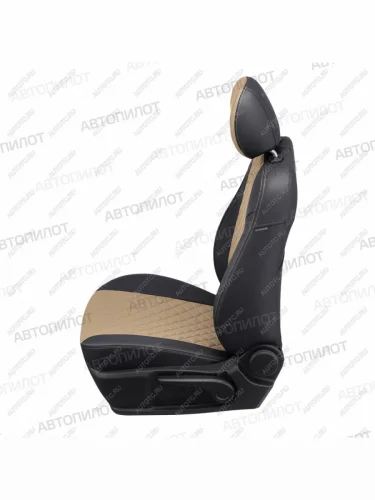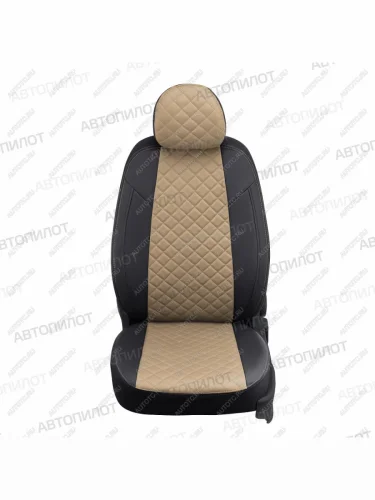 Чехлы на сиденья Ромб (9 мест сплош. экокожа) Автопилот Volkswagen Transporter T5 дорестайлинг (2003-2009) (черный/темно-бежевый) в Перми Пермском крае