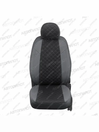 Чехлы на сиденья Ромб (раздел. 40/60+вырез под подлокот. экокожа) Автопилот Subaru Forester SJ дорестайлинг (2012-2016) (серый/черный) в Перми Пермском крае