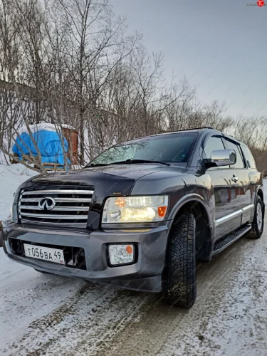 Дефлектор капота CA-Plastiс exclusive INFINITI QX56 JA60 дорестайлинг (2004-2007) (Classic черный, Без надписи) в Перми Пермском крае