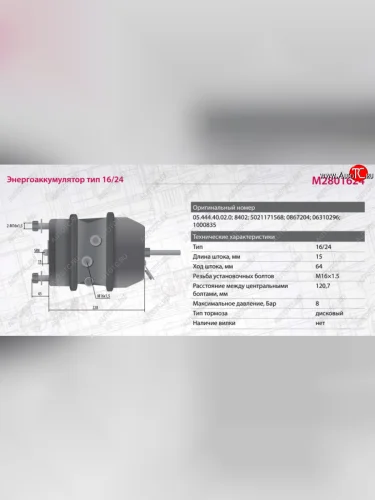 Энергоаккумулятор BPW ROR SAF SCHMITZ тип 1624 (дисковый тормоз) MARSHALL MARSHALL m2801624 в Перми Пермском крае