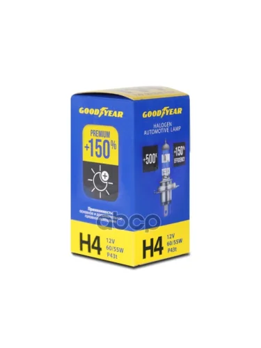 Лампа Галогеновая H4 12V 6055W Goodyear Premium +150% P43t (Gy014150) GOODYEAR арт. GY014150 в Перми Пермском крае