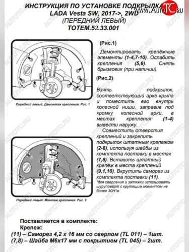 Левый подкрылок передний Totem Лада ВАЗ Веста 2180 седан дорестайлинг (2015-2023) в Перми Пермском крае