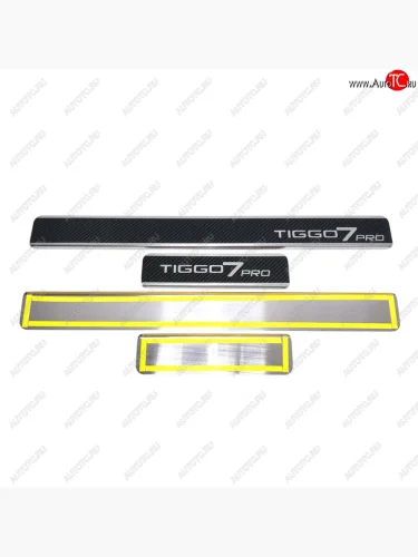 Накладки порожков салона INOX Chery Tiggo 7 PRO (2019-2025) (Нержавеющая сталь + карбон) в Перми Пермском крае