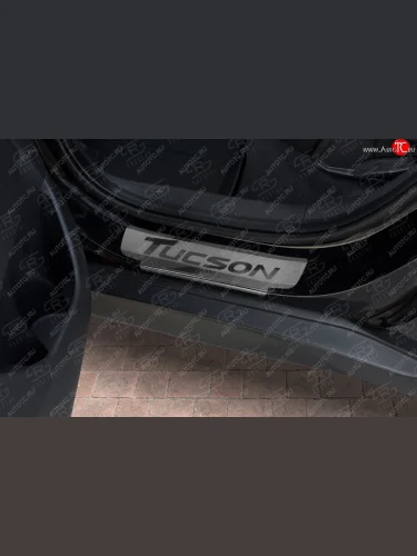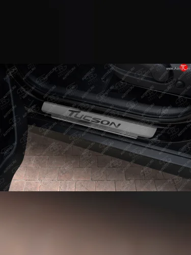 Накладки порожков салона Russtal Hyundai Tucson (2015-2021) TL (Нержавейка шлифованная с надписью) в Перми Пермском крае