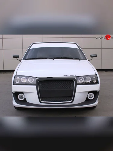 Передний бампер Фанат-Робот Лада ВАЗ 2108, 2109, 21099 (Неокрашенный, По бокам сетка) с доставкой в г. Пермь