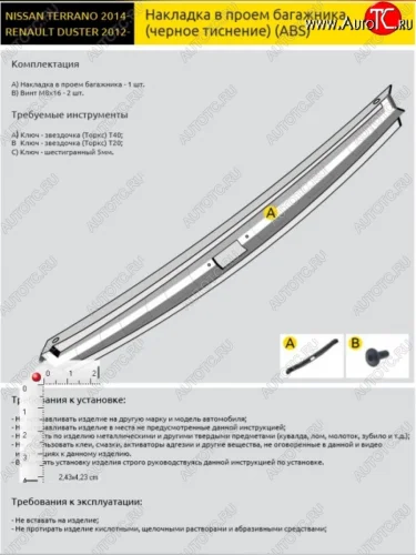 Пластиковый порожек в багажник автомобиля Petroil Tuning Renault Duster HS дорестайлинг (2010-2015) в Перми Пермском крае