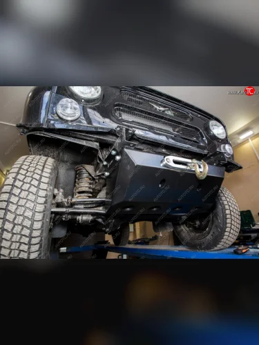 Площадка для скрытой установки лебёдки под штатный бампер с защитой рулевых тяг РИФ Уаз 315195 Хантер (2003-2025) в Перми Пермском крае