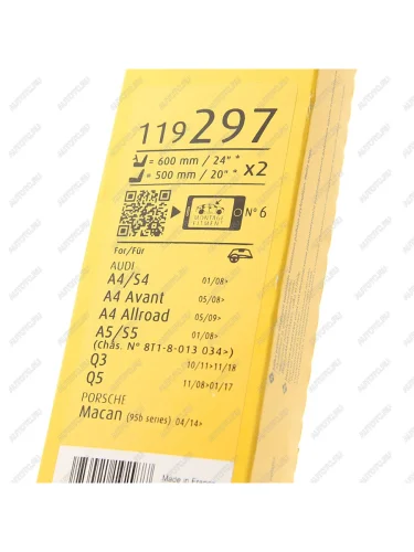 | Наименование | Щетка стеклоочистителя AUDI A4,A5,Q5 600500мм комплект Aerotwin SWF SWF 119297 в Перми Пермском крае |