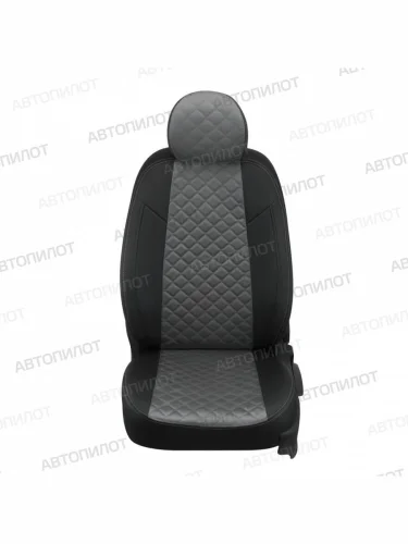 Чехлы сидений (экокожа/алькантара, 40/60, без подлокотника, Ambition) Автопилот Ромб Skoda Karoq NU7 дорестайлинг (2017-2021) (черный/серый) в Перми Пермском крае