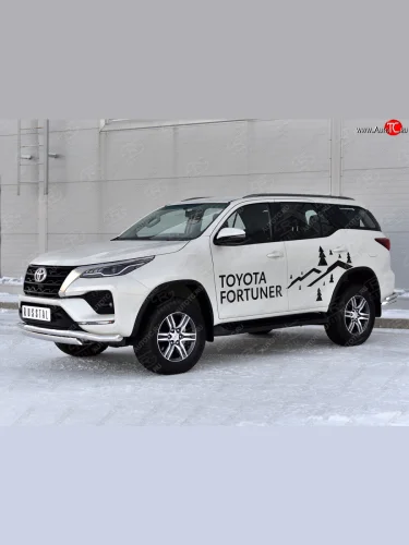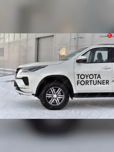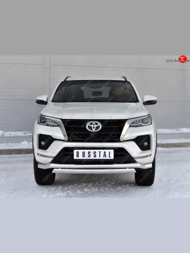 Защита переднего бампера (2 трубы Ø63 и 75х42 мм, нержавейка) Russtal Toyota Fortuner AN160 рестайлинг (2020-2025) в Перми Пермском крае