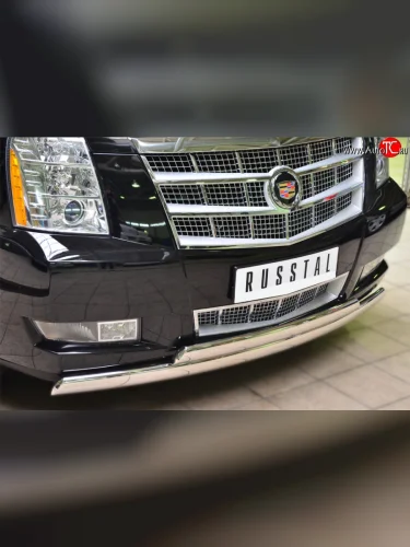 Защита переднего бампера (2 трубыØ75х42 мм, нержавейка) Russtal Cadillac Escalade GMT926 джип 5 дв. короткая база (2006-2014) в Перми Пермском крае