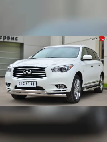 Защита переднего бампера (2 трубыØ75х42 мм, нержавейка) Russtal INFINITI JX35 (2012-2014) в Перми Пермском крае