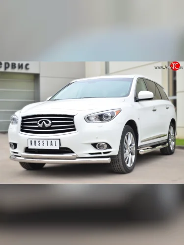Защита переднего бампера (2 трубыØ76 и 63 мм, нержавейка) SLITKOFF INFINITI JX35 (2012-2014) в Перми Пермском крае