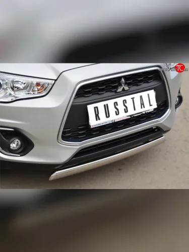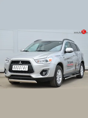 Защита переднего бампера (Ø75х42 мм, нержавейка) Russtal Mitsubishi ASX 1-ый рестайлинг (2013-2016) в Перми Пермском крае