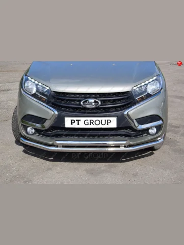 Защита переднего бампера Petroil Tuning (2 трубы d51/51) Лада ВАЗ XRAY (2016-2022) (Нержавеющая полированная сталь) с доставкой в г. Пермь