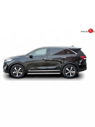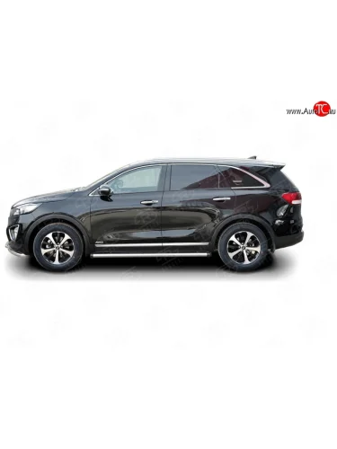 Защита порогов из круглой трубы диаметром 63 мм Russtal KIA Sorento UM/Prime дорестайлинг (2014-2018) (Защита порогов с со скосами на торцах (вариант 1)) в Перми Пермском крае