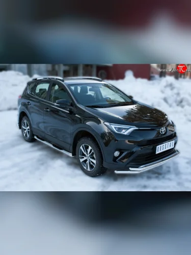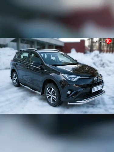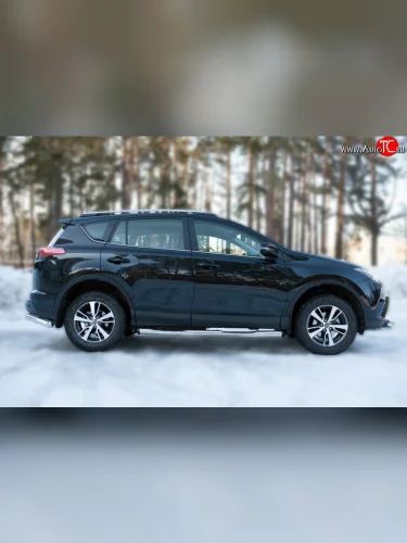 Защита порогов с пластиковыми вставками для ног из круглой трубы диаметром 76 мм (рестайлинг) Russtal Toyota RAV4 XA40 5 дв. дорестайлинг (2012-2015) (Защита порогов с со скосами на торцах (вариант 1)) с доставкой в г. Пермь