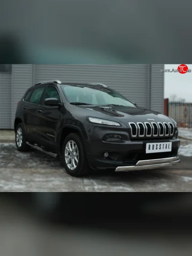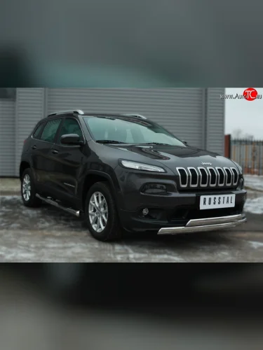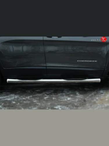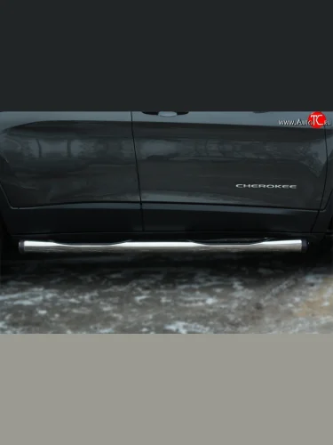 Защита порогов с пластиковыми вставками для ног из круглой трубы диаметром 76 мм Russtal Jeep Cherokee KL дорестайлинг (2014-2017) (Защита порогов с со скосами на торцах (вариант 1)) в Перми Пермском крае