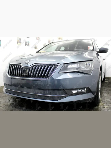 Защита радиатора (2 части) Стрелка11 Стандарт Skoda Superb B8 (3V) лифтбэк дорестайлинг (2015-2019) (черная) в Перми Пермском крае