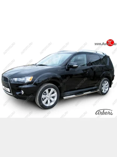 Защита штатных порогов Arbori (нержавейка, d76 mm). Mitsubishi Outlander XL (CW) рестайлинг (2010-2013) в Перми Пермском крае
