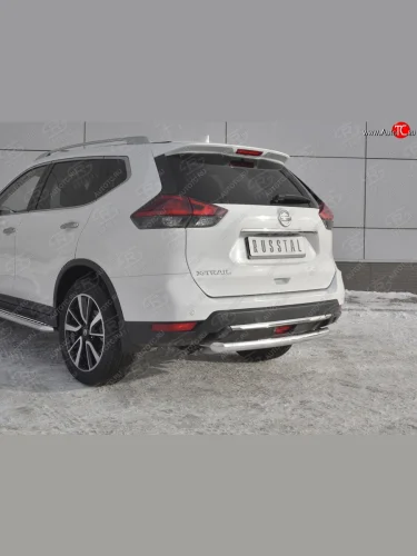 Защита заднего бампера (Ø63 мм, нержавейка) SLITKOFF Nissan X-trail 3 T32 рестайлинг (2017-2022) в Перми Пермском крае