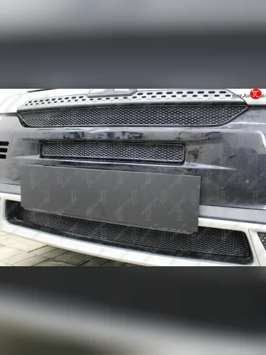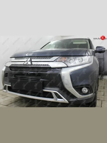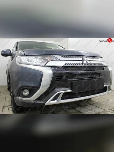 Защитная сетка в бампер (3 части, ячейка 4х10 мм) Alfeco Премиум Mitsubishi Outlander GF 3-ий рестайлинг (2018-2022) (Чёрная) в Перми Пермском крае