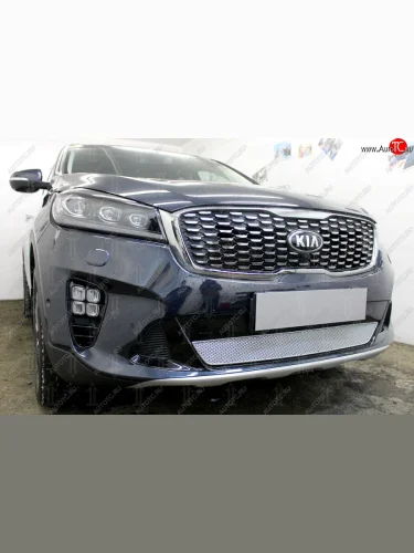 Защитная сетка в бампер (низ, ячейка 4х10 мм) Alfeco Премиум KIA Sorento UM/Prime рестайлинг (2018-2020) (Хром) с доставкой в г. Пермь