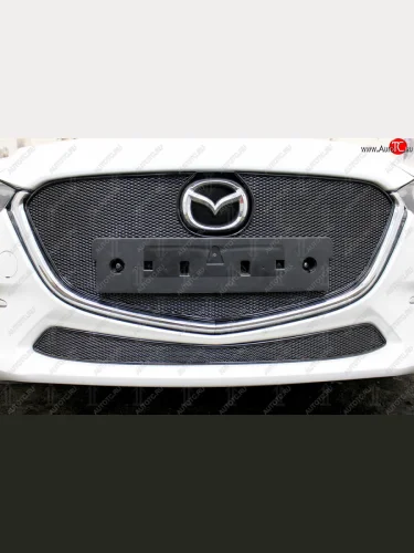Защитная сетка в бампер (низ, ячейка 4х10 мм) Alfeco Премиум Mazda 3/Axela BM рестайлинг, хэтчбэк (2016-2019) (Чёрная) в Перми Пермском крае
