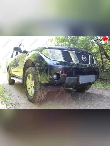 Защитная сетка в бампер (верх, 3 части, ячейка 3х7 мм) Стрелка11 Стандарт Nissan Navara 2 D40 дорестайлинг (2004-2010) (Чёрная) в Перми Пермском крае